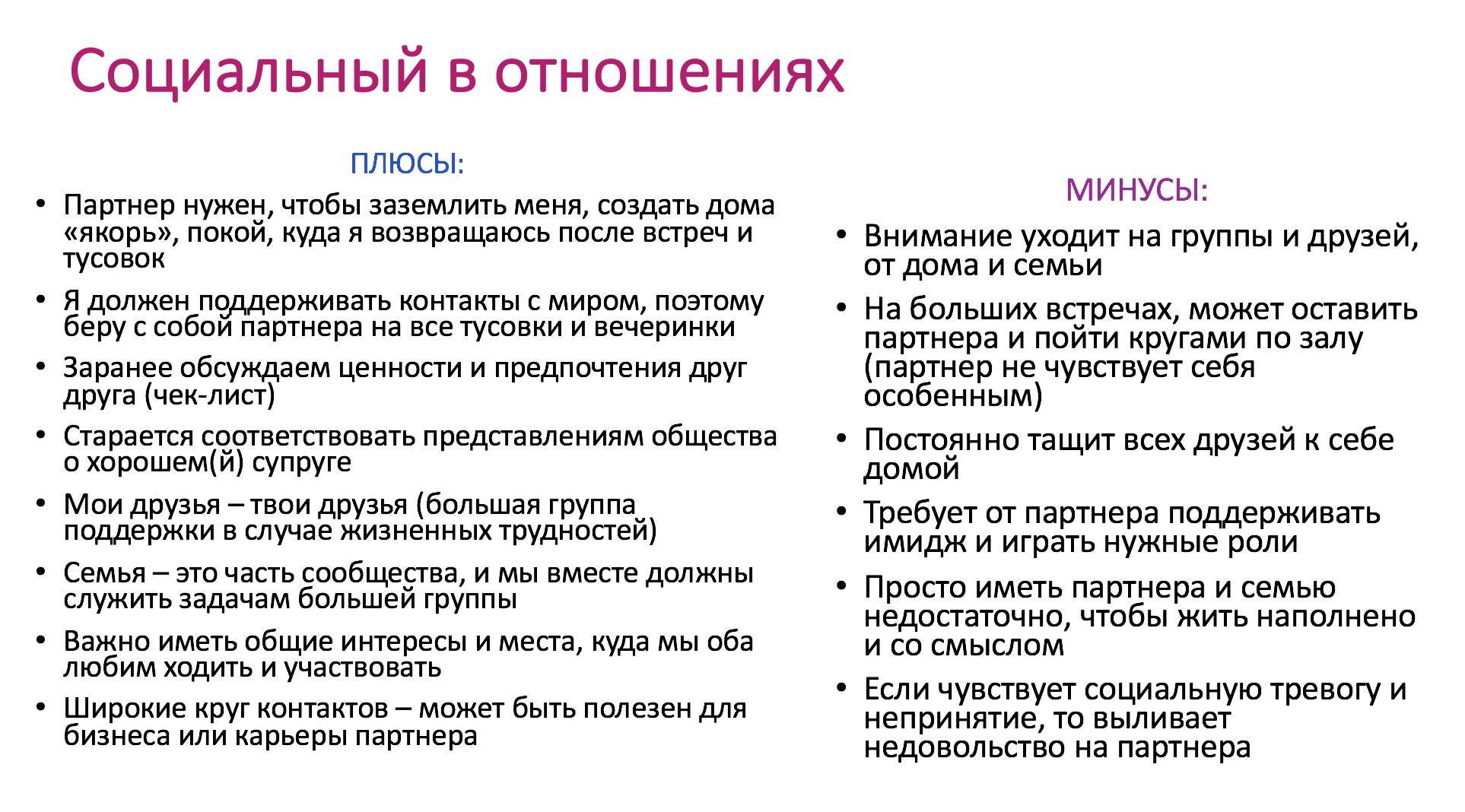 • Как строятся отношения в парах между разными и одинаковыми подтипами, и как их улучшить