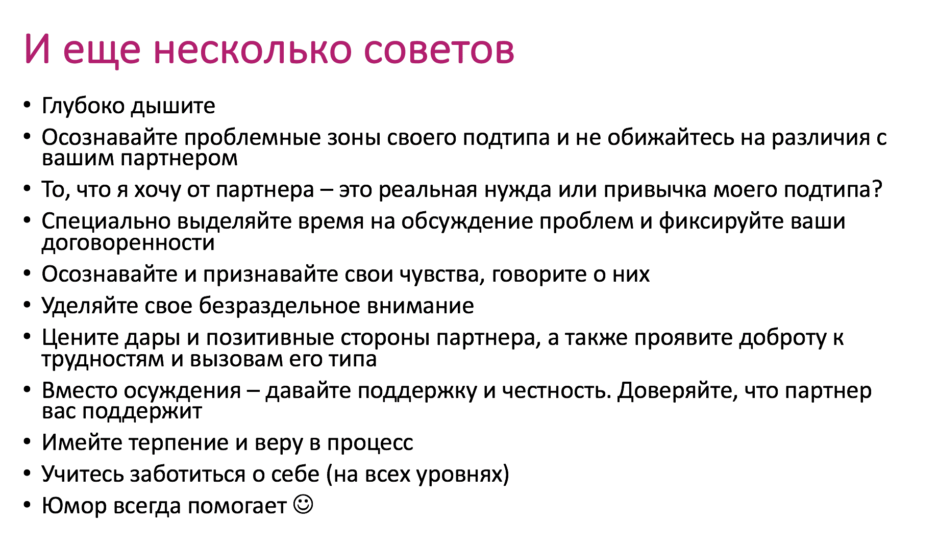• Какие советы помогут нам улучшить отношения с представителем каждого подтипа